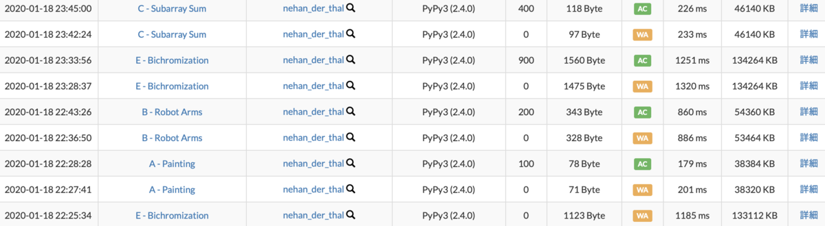 ちなみに本番中のWAは色付けでした。同じD[v]で連結しているときに適当に塗ると例えば、1-2-3-4で1,3で違う色を塗ってしまって2が塗れなくなるという事態が起こっていました。